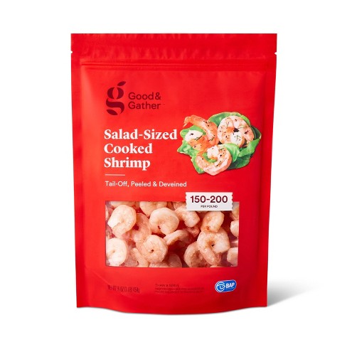 Salad Sized Cooked Frozen Shrimp Tail Off Peeled Deveined 150 200ct Per Pound 16oz Good Gather Target